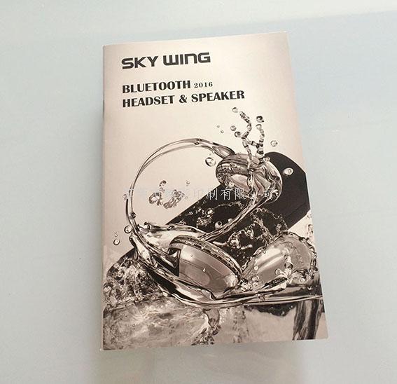 品名:东莞市天翼通讯电子产品画册,尺寸:11.5*18cm, 页码:32P,骑马钉。表面处理:封面封底双面哑胶,内页双面光油。